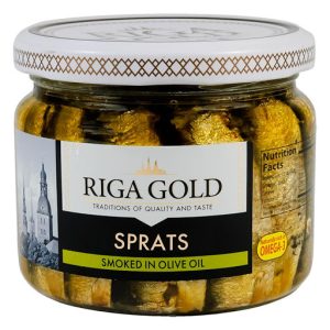 Riga Gold Smoked Sprats in olive oil 250gm